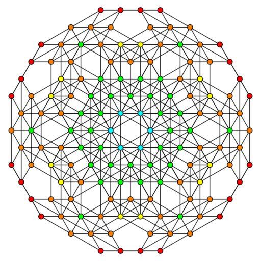 Keywords: 5-simplex t0123.svg en en 5-simplex family polytope graph in A5 Coxeter plane own Tomruen Set of colored Coxeter plane graphs red orange yellow green vertices Simplex
