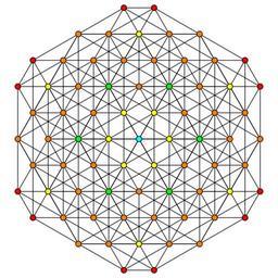 Keywords: 5-simplex t013.svg en en 5-simplex family polytope graph in A5 Coxeter plane own Tomruen Set of colored Coxeter plane graphs red orange yellow green vertices Simplex
