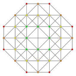 Keywords: 5-simplex t014 A3.svg en en 5-simplex family graph in A3 en Coxeter plane own Tomruen Set of colored Coxeter plane graphs red orange yellow green vertices