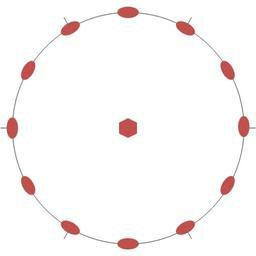 | Keywords: 622 point group.png en Stereographic representation of the symmetry point group 622 The 001 direction is perpendicular to the projection plane The rotation axes are represented in red The thin black ticks show the direction of the equivalent crystallographic axes a1 a2 and a3 fr Représentation stéréographique du groupe ponctuel de symétrie 622 La direction 001 est perpendiculaire au plan de projection Les axes de rotation sont représentés en rouge Les trait fins noirs montrent la direction des axes cristallographiques équivalents a1 a2 et a3 own Perditax 2011-06-06 Cc-zero Point groups |