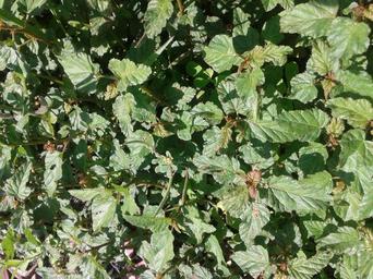 | Keywords: பிண்ணாக்குக் கீரை6.jpg en Botanical name - Melochia corchorifolia Common name Chocolate weed According to researches Leaves have Triterpenes Flavonol Glycosides etc Leaves are consumed as a potherb; Dried leaves are source of Protein; Leaves are used to treat Ulcers Abdominal swelling and Headache and Chest pain; Roots and leaves are useful for Snakebites and Wounds; This plant is a source of fibre for making bags ; Stems are used for tying bundles Photo - Thick growth of the weed Melochia corchorifolia ta பிண்ணாக்குக் க ரை இலை க ரையாகச் சமைத்து உண்ணத் தக்கது;வயிற்றுப் புண்ணை இக் க ரை ஆற்றும்; விரை வ க்கத்திற்கு இக் க ரை மருந்து;நெஞ்சு வலிக்கும் இக் க ரையை உண்ணலாம்; பாம்புகடி மருந்தாக வேரும் இலையும் பயன்படுகிறது; பிண்ணாக்குக் க ரையில் புரதச் சத்து உள்ளது; தண்டுப் பகுதிகளைக் கட்டும் கயிறாகப் பயன்படுத்துவர் ;நோய் ந க்கும் சில இரசாயனப் பொருள்களை இத் தாவரம் கொண்டுள்ளது படம் - அடர்ந்து வளர்ந்துநிற்கும் பிண்ணாக்குக் க ரை own Dr S Soundarapandian 2014-03-30 Own research Shot in Chennai Tamilnadu India 4 5 kms off sea-shore ;Latitude-13°02'20 N ; Longitude- 80°13'43 E ; Elevation Melochia corchorifolia Cc-zero |
