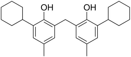 | Keywords: 6,6'-methylenebis(2-cyclohexyl-4-methylphenol) 100.svg validSVG Structure of 6 6'-methylenebis 2-cyclohexyl-4-methylphenol Own 2014-04-02 Emeldir <span class signature-talk >talk</span> Chemical structure verified https //upload wikimedia org/wikipedia/commons/0/04/6 2C6 27-methylenebis 282-cyclohexyl-4-methylphenol 29_100 svg 1S/C27H36O2/c1-18-13-22 26 28 24 15-18 20-9-5-3-6-10-20 17-23-14-19 2 16-25 27 23 29 21-11-7-4-8-12-21/h13-16 20-21 28-29H 3-12 17H2 1-2H3 AKNMPWVTPUHKCG-UHFFFAOYSA-N 4066-02-8 PD-chem Aging inhibitors Alkylphenols Bisphenols Cyclohexyl compounds |