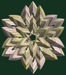 | Keywords: mathematica 3d cg parametricplot3d texture torus code program algorithm プログラム コード アルゴリズム 輪環 りんかん ドーナツ どーなつ 六芒星 ろくぼうせい geometric sculpture geometricsculpture shape geometry sculpture mapping テクスチャ マッピング 模様 もよう abstract 抽象 ちゅうしょう アブストラクト design pattern デザイン パターン graphic グラフィック グラフィクス structure 意匠 構造 symmetry 対称性 たいしょうせい シンメトリー 対称 たいしょう outdoor pastel a = 3; (* center hole size *) b = 6; (* hexa-torus *) c = 1; (* distance from the center of rotation *) d = 6; (* number of torus *) h = 2; (* height of a torus *) SetOptions[ParametricPlot3D, PlotRange -> Full, Mesh -> None, Boxed -> False, Axes -> False, PlotPoints -> 400, ImageSize -> 3000, Background -> RGBColor[{20, 50, 30}/255], PlotStyle -> Directive[Specularity[White, 40], Texture[Import["D:/tmp/862.jpg"]]], TextureCoordinateFunction -> ({#4 + #5, #5 / Pi} &), Lighting -> "Neutral"]; f[v_] := TriangleWave[{-1, 1}, v/(2 Pi)]; g[v_] := TriangleWave[{-1, 1}, v/(2 Pi) + 1/4]; x = (a - g[t] - f[b s]) Cos[s] + c; y = (a - g[t] - f[b s]) Sin[s] + c; z = (a - f[t] - h f[b s]); rm = Table[{x, y, z}.RotationMatrix[2 i Pi/d, {0, 0, 1}], {i, d}]; ParametricPlot3D[rm, {t, 0, 2 Pi}, {s, 0, Pi}] (*--- The Texture *) a = 3; (* center hole size *) b = 6; (* hexa-torus *) c = 1; (* distance from the center of rotation *) d = 6; (* number of torus *) h = 2; (* height of a torus *) SetOptions[ParametricPlot3D, PlotRange -> Full, Mesh -> None, Boxed -> False, Axes -> False, PlotPoints -> 400, ImageSize -> 3000, Background -> RGBColor[{20, 50, 30}/255], PlotStyle -> Directive[Specularity[White, 40], Texture[Import["D:/tmp/862.jpg"]]], TextureCoordinateFunction -> ({#4 + #5, #5 / Pi} &), Lighting -> "Neutral"]; f[v_] := TriangleWave[{-1, 1}, v/(2 Pi)]; g[v_] := TriangleWave[{-1, 1}, v/(2 Pi) + 1/4]; x = (a - g[t] - f[b s]) Cos[s] + c; y = (a - g[t] - f[b s]) Sin[s] + c; z = (a - f[t] - h f[b s]); rm = Table[{x, y, z}.RotationMatrix[2 i Pi/d, {0, 0, 1}], {i, d}]; ParametricPlot3D[rm, {t, 0, 2 Pi}, {s, 0, Pi}] (*--- The Texture *) |