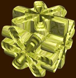 | Keywords: mathematica 3d cg parametricplot3d texture torus 輪環 りんかん ドーナツ どーなつ 六芒星 ろくぼうせい 六光星 ろくこうせい 六稜星 ろくりょうせい プログラム コード code program algorithm コード アルゴリズム hexagram geometric sculpture geometricsculpture shape geometry sculpture mapping テクスチャ マッピング 模様 もよう design pattern デザイン パターン graphic グラフィック グラフィクス structure 意匠 構造 symmetry 対称性 たいしょうせい シンメトリー 対称 たいしょう algorithm indoor a = 2; (* center hole size of a torus *) b = 6; (* hexa-torus *) c = 3; (* distance from the center of rotation *) d = 6; (* number of torus *) SetOptions[ParametricPlot3D, PlotRange -> Full, Mesh -> None, Boxed -> False, Axes -> None, PlotPoints -> 400, ImageSize -> 3000, Background -> Darker[Orange, 0.8], PlotStyle -> Directive[Specularity[White, 30], Texture[Import["D:/tmp/71.jpg"]]], TextureCoordinateFunction -> ({#4, #5 b Pi} &), Lighting -> "Neutral"]; f[v_] := Sin[2 Sin[Sin[Sin[v]]]]; x = (a - Cos[t] - f[b s]) Cos[s + Pi/(2 b)]; y = (a - Cos[t] - f[b s]) Sin[s + Pi/(2 b)]; z = Sum[Sin[(2 k - 1) t]/(2 k - 1), {k, 4}] + c; vc = {{0, 0, 1}, {0, 0, -1}, {0, 1, 0}, {0, -1, 0}, {1, 0, 0}, {-1, 0, 0}}; rot = Table[{x, y, z}.RotationMatrix[{{0, 0, 1}, vc[[i]]}], {i, d}]; ParametricPlot3D[rot, {t, 0, 2 Pi}, {s, 0, 2 Pi}] (*--- The Texture *) a = 2; (* center hole size of a torus *) b = 6; (* hexa-torus *) c = 3; (* distance from the center of rotation *) d = 6; (* number of torus *) SetOptions[ParametricPlot3D, PlotRange -> Full, Mesh -> None, Boxed -> False, Axes -> None, PlotPoints -> 400, ImageSize -> 3000, Background -> Darker[Orange, 0.8], PlotStyle -> Directive[Specularity[White, 30], Texture[Import["D:/tmp/71.jpg"]]], TextureCoordinateFunction -> ({#4, #5 b Pi} &), Lighting -> "Neutral"]; f[v_] := Sin[2 Sin[Sin[Sin[v]]]]; x = (a - Cos[t] - f[b s]) Cos[s + Pi/(2 b)]; y = (a - Cos[t] - f[b s]) Sin[s + Pi/(2 b)]; z = Sum[Sin[(2 k - 1) t]/(2 k - 1), {k, 4}] + c; vc = {{0, 0, 1}, {0, 0, -1}, {0, 1, 0}, {0, -1, 0}, {1, 0, 0}, {-1, 0, 0}}; rot = Table[{x, y, z}.RotationMatrix[{{0, 0, 1}, vc[[i]]}], {i, d}]; ParametricPlot3D[rot, {t, 0, 2 Pi}, {s, 0, 2 Pi}] (*--- The Texture *) |