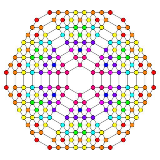 Keywords: 6-cube t12345 B3.svg en 6-cube family graph in B3 en Coxeter plane own 10/11/10 self Set of colored Coxeter plane graphs; 216 vertices