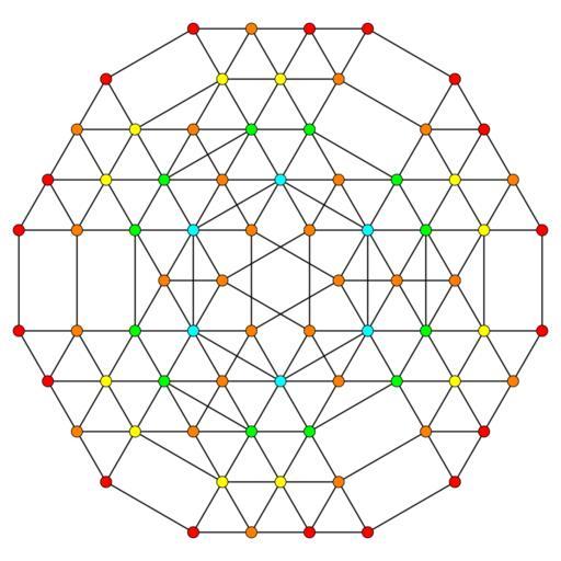 Keywords: 6-simplex t01245 A2.svg en en 6-simplex family graph in A2 en Coxeter plane own Tomruen Set of colored Coxeter plane graphs red orange yellow green vertices