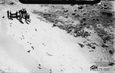 | Keywords: 73 Squadron RAAF Anson aircrew rescue Moruya NSW Dec 1943 AWM P02175.005.jpg AWM caption Australia New South Wales Moruya Aerial photograph of aircrew and local civilians standing on a beach around the inflatable life raft used by aircrew after their plane crashed at sea three miles off the coast of Moruya The crew were flying Anson aircraft AX-510 from No 73 Squadron RAAF on a routine anti-submarine patrol at the time of the crash The crew 406371 Flying Officer Kenneth Rolfe Pilot; 427838 Pilot Officer PO John Harold Duncan Venning navigator and 419125 PO Robert Douglas Kerr air gunner were rescued at sea by local fishermen approximately two hours after the aircraft crashed P02175 005 1943-12-31 author Copyright expired - public domain PD-AustraliaGov No 73 Squadron RAAF Avro Anson aircrew World War II people of the Royal Australian Air Force Moruya New South Wales World War II aerial photographs of Australia Aerial photographs of New South Wales |