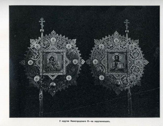 | Keywords: 75. Хоругви Нижегородского общества хоругвеносцев.jpg ru Хо угви ижего одского общества хо угвеносцев 1904 http //andcvet narod ru/arxan/24/sam html не указан other versions Custom license marker 2014 09 24 PD-RusEmpire Uploaded with UploadWizard Album of the Sarov Hermitage views 1904 |