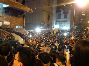 | Keywords: 香港各界發起反人大釋法大遊行和集會 76.jpg zh-tw 中 人大常委 11 7日將就香港 年新政兩位議員宣誓風波,對基 法 宣誓 例宣布釋法內容之際,香港民間人權陣線星 天發起各界 反對釋法大遊行 和集 ,抗議人大 香港高等法院審理 宣誓風波司法覆核案 間,主動對基 法第104 釋法,破壞香港獨立的司法制度 香港民陣發起反釋法大遊行後,數以千計的示威 繼續遊行到西環的中聯辦抗議人大釋法 8點半左右,示威 手舉雨傘再次沖擊警方防線,警方則狂噴辣椒噴劑還擊 警方調派大批警員增援,並將配備防暴頭盔的警員派至 線與示威 對峙 警方不斷呼籲示威 持冷 ,不要 擊警方防線,要求示威 盡快離開 9點前, 中聯辦外與警察對峙的示威 突然撤離,輕 西 警署外的徳輔道西和西邊街道口,現場雙向交 中斷, 場自2014年雨傘運動後的佔領行動 醞 中,現場至少 幾千之 十多分鐘後,警方開始廣 播,要求佔路人士離開 示威 9點過後佔據了中聯辦外 段德輔道,並 中聯辦後 外與警方防線展開推撞,警方用辣椒噴 還擊將示威 防線推後 示威 不斷呼喊反對釋法 警方 中聯辦西邊的 光街路口佈署第二道防線,並 警員從路旁的西 警署裡向警察傳遞防暴盾牌 步部署防線 目前還不清楚警方何時清場 2016-11-06 20 41 13 http //www voachinese com/a/hk-protest-20161106/3583208 html 海彥 other versions Custom license marker 2016 11 06 PD-USGov-VOA Occupy Sai Wan |