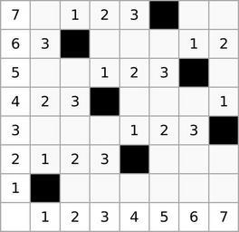 | Keywords: Сатиновое переплетение 7.3.png ru Сатиновое Ð¿ÐµÑ ÐµÐ¿Ð»ÐµÑ‚ÐµÐ½Ð¸Ðµ 7/3 own Quicktotal 2013-01-05 wikitable center background white 7 1 2 3 background black center background white 6 3 background black 1 2 center background white 5 1 2 3 background black center background white 4 2 3 background black 1 center background white 3 1 2 3 background black center background white 2 1 2 3 background black center background white 1 background black center style background white 1 2 3 4 5 6 7 <source lang html5 > wikitable center background white 7 1 2 3 background black center background white 6 3 background black 1 2 center background white 5 1 2 3 background black center background white 4 2 3 background black 1 center background white 3 1 2 3 background black center background white 2 1 2 3 background black center background white 1 background black center style background white 1 2 3 4 5 6 7 </source> Weaving patterns Cc-zero |