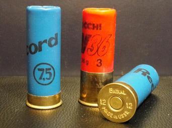 Keywords: 7.5 Cartridges.JPG en 12-bore shotgun cartridges Russian and Italian made own Lord Mountbatten 2011-01-16 Hunting cartridges Shotgun shells Taken with Sony DSC-H20