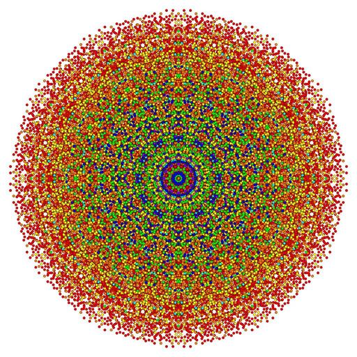 Keywords: 7-cube t01346 B6.svg en 7-cube family graph in B6 en Coxeter plane Vertices only no edges due to file sizes too large own 10/21/10 self Set of colored Coxeter plane graphs red orange yellow green vertices