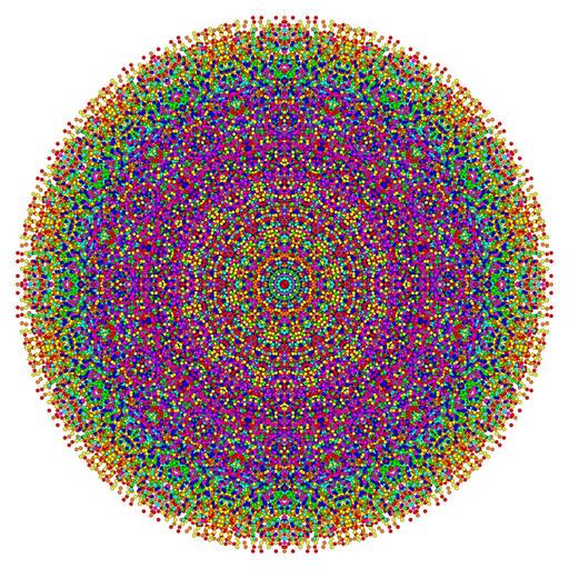 Keywords: 7-cube t123456 B6.svg en 7-cube family graph in B6 en Coxeter plane Vertices only no edges due to file sizes too large own 10/21/10 self 7-polytopes