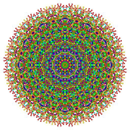 Keywords: 7-cube t1256 B6.svg en 7-cube family graph in B6 en Coxeter plane Vertices only no edges due to file sizes too large own 10/21/10 self 7-polytopes