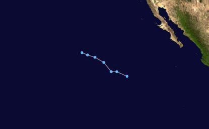 | Keywords: 7E 1989 track.png Track map of Tropical Depression Seven-E of the 1989 Pacific hurricane season The points show the location of the storm at 6-hour intervals The colour represents the storm's maximum sustained wind speeds as classified in the Saffir-Simpson Hurricane Scale see below and the shape of the data points represent the nature of the storm according to the legend below User Nilfanion/Tc/T Created by Cyclonebiskit using Wikipedia WikiProject Tropical cyclones/Tracks The background image is from NASA Tracking data switch source from the National Hurricane Center <sup>http //www nhc noaa gov/pastall shtml</sup> from the Central Pacific Hurricane Center <sup>http //www prh noaa gov/cphc/summaries/</sup> from the Joint Typhoon Warning Center <sup>https //metocph nmci navy mil/jtwc/best_tracks/</sup> from the Japan Meteorological Agency <sup>http //www jma go jp/jma/jma-eng/jma-center/rsmc-hp-pub-eg/besttrack html</sup> from the National Hurricane Center <sup>http //www nhc noaa gov/pastall shtml and the Central Pacific Hurricane Center http //www prh noaa gov/cphc/summaries/</sup> from the Central Pacific Hurricane Center <sup>http //www prh noaa gov/cphc/summaries/ and the Joint Typhoon Warning Center https //metocph nmci navy mil/jtwc/best_tracks/</sup> from the w National Hurricane Center <sup>http //www nhc noaa gov/pastall shtml</sup> or the Joint Typhoon Warning Center <sup>https //metocph nmci navy mil/jtwc/best_tracks/</sup> 2009-09-03 Cyclonebiskit 1989 Pacific hurricane season Pacific hurricane tracks |