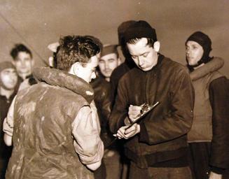 | Keywords: indoor 80-G-205352: USS Card (CVE 11) takes care of the survivors of USS Leary (DD 158) which was torpedoed and sunk December 24, 1943. Shown: S2c Stanley C. Rogoynski coming aboard as a Yeoman takes his name. Photograph released December 25, 1943. Official U.S. Navy photograph, now in the collections of the National Archives. (2016/11/15). 80-G-205352: USS Card (CVE 11) takes care of the survivors of USS Leary (DD 158) which was torpedoed and sunk December 24, 1943. Shown: S2c Stanley C. Rogoynski coming aboard as a Yeoman takes his name. Photograph released December 25, 1943. Official U.S. Navy photograph, now in the collections of the National Archives. (2016/11/15). |