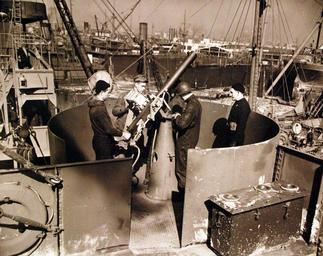| Keywords: 80-G-2361: Atlantic Convoys. New York Navy Yard workers fitting armament on merchant ships. Shown: Setting up machine gun installations. Photograph by Third Naval District, March 1942. U.S. Navy Photograph, now in the collections of the National Archives. (2016/02/02). 80-G-2361: Atlantic Convoys. New York Navy Yard workers fitting armament on merchant ships. Shown: Setting up machine gun installations. Photograph by Third Naval District, March 1942. U.S. Navy Photograph, now in the collections of the National Archives. (2016/02/02). |
