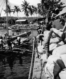 | Keywords: blackandwhite monochrome outdoor black and white 80-G-259554: Unloading rice from USS LCI 4361 at Guerilla Headquarters at Gingoog on Mindanao, Philippines. Photographed by Chief Photographer’s Mate A.W. McEleny, May 20, 1945. (5/26/2015). 80-G-259554: Unloading rice from USS LCI 4361 at Guerilla Headquarters at Gingoog on Mindanao, Philippines. Photographed by Chief Photographer’s Mate A.W. McEleny, May 20, 1945. (5/26/2015). | ||||