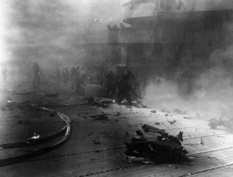 | Keywords: blackandwhite monochrome outdoor sky black and white 80-G-40301: Battle of the Santa Cruz Islands, October 1942. Fire-fighting crews try to extinguish flames on board USS Hornet (CV-8) after it was struck by a crashing Japanese dive bomber, during the morning of 26 October 1942. Hornet sunk later that day. (2015/10/20). 80-G-40301: Battle of the Santa Cruz Islands, October 1942. Fire-fighting crews try to extinguish flames on board USS Hornet (CV-8) after it was struck by a crashing Japanese dive bomber, during the morning of 26 October 1942. Hornet sunk later that day. (2015/10/20). |