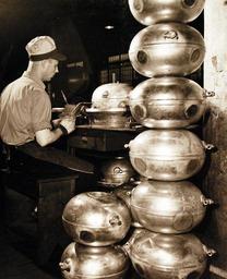 | Keywords: indoor ceramic sculpture 80-G-44236: U.S. Naval Torpedo Station, Alexandria, Virginia. Men and women work 24 hours a day turning weapons out. Each has its own engine, packs hundreds of pounds of explosives and costs $12,000. Shown: Fuel flasks are soldered by a workman for submarine type “tin fish”. Photographed received January 14, 1944. Official U.S. Navy Photograph, now in the collections of the National Archives. (2016/11/29). 80-G-44236: U.S. Naval Torpedo Station, Alexandria, Virginia. Men and women work 24 hours a day turning weapons out. Each has its own engine, packs hundreds of pounds of explosives and costs $12,000. Shown: Fuel flasks are soldered by a workman for submarine type “tin fish”. Photographed received January 14, 1944. Official U.S. Navy Photograph, now in the collections of the National Archives. (2016/11/29). |
