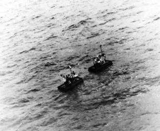 | Keywords: blackandwhite monochrome outdoor black and white 80-G-450375: “Rescue at Sea,” December 5, 1943. The twelve survivors of Cuban cargo vessel “Libertad” found by U.S. Navy blimp K-72 at 17:15 wave to the blimp crew from the two rafts on which they had been drifting for more than 36 hours. These 12 were also picked up by USS Natchez (PF 2). These men were found about five miles south of where the K-82 found the first two survivors. German submarine U-129 sank the ship the day prior. U.S. Navy photograph, now in the collections of the National Archives. (2016/04/05). 80-G-450375: “Rescue at Sea,” December 5, 1943. The twelve survivors of Cuban cargo vessel “Libertad” found by U.S. Navy blimp K-72 at 17:15 wave to the blimp crew from the two rafts on which they had been drifting for more than 36 hours. These 12 were also picked up by USS Natchez (PF 2). These men were found about five miles south of where the K-82 found the first two survivors. German submarine U-129 sank the ship the day prior. U.S. Navy photograph, now in the collections of the National Archives. (2016/04/05). |