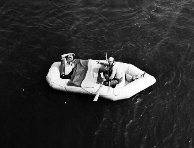 | Keywords: blackandwhite monochrome black and white 80-G-450467: Air Sea Rescue Drill from lighter-than-air aircraft. Shown: Life Raft Sail Signal. Sign reads: Notify rescue agency of my position. Photographed by J.L. Hasse, September 28, 1944. U.S. Navy photograph, now in the collections of the National Archives. (2016/04/05). 80-G-450467: Air Sea Rescue Drill from lighter-than-air aircraft. Shown: Life Raft Sail Signal. Sign reads: Notify rescue agency of my position. Photographed by J.L. Hasse, September 28, 1944. U.S. Navy photograph, now in the collections of the National Archives. (2016/04/05). |