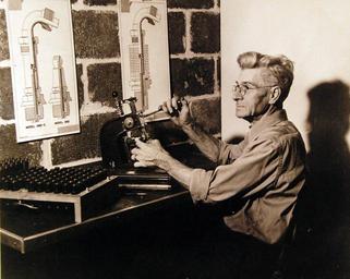 | Keywords: monochrome 80-G-46486: As a reward for his ingenuity and loyalty, L. M. Oden, Sr., has been awarded $1,250 by the Navy Department Board on Awards to Civil Employees. Mr. Oden, a 65-year-old aircraft mechanic who came out of retirement after the Pearl Harbor attack, has perfected a machine for setting spark plug gaps nearly 13 times as fast as the former method, with much more accuracy. Naval authorities expect the machine to effect an annual savings of $350,000. Received September 13, 1944. U.S. Navy Photograph, now in the collections of the National Archives. (2016/06/07). 80-G-46486: As a reward for his ingenuity and loyalty, L. M. Oden, Sr., has been awarded $1,250 by the Navy Department Board on Awards to Civil Employees. Mr. Oden, a 65-year-old aircraft mechanic who came out of retirement after the Pearl Harbor attack, has perfected a machine for setting spark plug gaps nearly 13 times as fast as the former method, with much more accuracy. Naval authorities expect the machine to effect an annual savings of $350,000. Received September 13, 1944. U.S. Navy Photograph, now in the collections of the National Archives. (2016/06/07). |