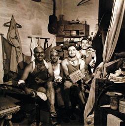 | Keywords: 80-G-473731 (TR-15483): Japanese Surrender, August-September 1945. Scores of Allied prisoners were released by U.S. Navy and Marine Corps men at Saitama Prefecture, a Franciscan convent some 30 miles north of Tokyo used as a prison during the war. Shown are four Greek sailors held since 1941, holding canned food dropped by American planes to them. Photographed by Lieutenant Wayne Miller, September 1945. (2015/11/10). 80-G-473731 (TR-15483): Japanese Surrender, August-September 1945. Scores of Allied prisoners were released by U.S. Navy and Marine Corps men at Saitama Prefecture, a Franciscan convent some 30 miles north of Tokyo used as a prison during the war. Shown are four Greek sailors held since 1941, holding canned food dropped by American planes to them. Photographed by Lieutenant Wayne Miller, September 1945. (2015/11/10). |