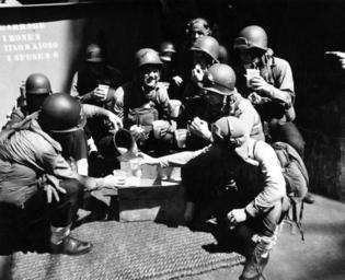| Keywords: monochrome blackandwhite black and white 80-G-55240: Chow on board USS Minneapolis (CA 36) the morning of the raid on Wake Island, October 5, 1943. Men are getting sandwiches and coffee at General Quarters stations. Photographed by CPU-7. (4/28/2015). 80-G-55240: Chow on board USS Minneapolis (CA 36) the morning of the raid on Wake Island, October 5, 1943. Men are getting sandwiches and coffee at General Quarters stations. Photographed by CPU-7. (4/28/2015). | ||||