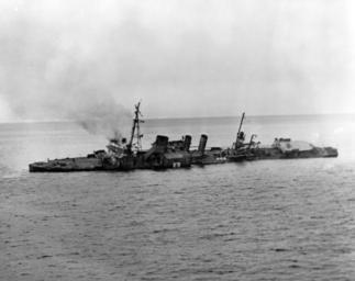 | Keywords: blackandwhite monochrome outdoor black and white 80-G-702832: Ex-USS Stewart (DD-224), sinking after use as a target, 24 May 1946. The Japanese flag painted amidships reflects Stewart's 1943-1945 service as the Japanese Navy's Patrol Boat 102. She was recovered by the U.S. Navy after the end of World War II and recommissioned as USS DD-224 for the voyage back to the United States. Official U.S. Navy Photograph, now in the collections of the National Archives. 80-G-702832: Ex-USS Stewart (DD-224), sinking after use as a target, 24 May 1946. The Japanese flag painted amidships reflects Stewart's 1943-1945 service as the Japanese Navy's Patrol Boat 102. She was recovered by the U.S. Navy after the end of World War II and recommissioned as USS DD-224 for the voyage back to the United States. Official U.S. Navy Photograph, now in the collections of the National Archives. |