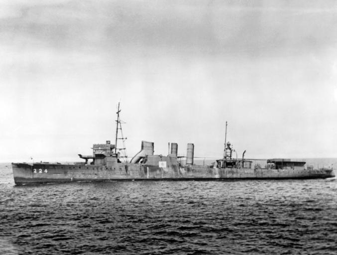 | Keywords: blackandwhite monochrome outdoor vehicle black and white 80-G-702833: Ex-USS Stewart (DD-224), under tow on 24 May 1946, just before she was expended as a target. Note that her Japanese radar antennas have been removed from atop the ship's pilothouse and abaft her foremast. The Japanese flag painted amidships reflects Stewart's 1943-1945 service as the Japanese Navy's Patrol Boat 102. She was recovered by the U.S. Navy after the end of World War II and recommissioned as USS DD-224 for the voyage back to the United States. Official U.S. Navy Photograph, now in the collections of the National Archives. 80-G-702833: Ex-USS Stewart (DD-224), under tow on 24 May 1946, just before she was expended as a target. Note that her Japanese radar antennas have been removed from atop the ship's pilothouse and abaft her foremast. The Japanese flag painted amidships reflects Stewart's 1943-1945 service as the Japanese Navy's Patrol Boat 102. She was recovered by the U.S. Navy after the end of World War II and recommissioned as USS DD-224 for the voyage back to the United States. Official U.S. Navy Photograph, now in the collections of the National Archives. |