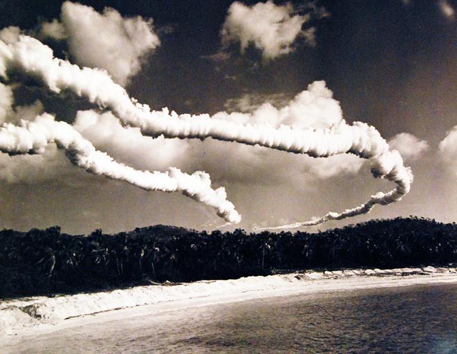 | Keywords: outdoor 80-G-706912:  The 1949 Caribbean Maneuvers on Vieques Island, D-minus-One-Day.  Fighter planes lay smoke screen over Blue Beach prior to landing of troops.  The smoke screen was to harass the “enemy troops” so that they would be unable to see the landing craft as they approached the beach,  March 2, 1949.  U.S. Navy Photograph, now in the collections of the National Archives.  (2016/06/14).   80-G-706912:  The 1949 Caribbean Maneuvers on Vieques Island, D-minus-One-Day.  Fighter planes lay smoke screen over Blue Beach prior to landing of troops.  The smoke screen was to harass the “enemy troops” so that they would be unable to see the landing craft as they approached the beach,  March 2, 1949.  U.S. Navy Photograph, now in the collections of the National Archives.  (2016/06/14).    |