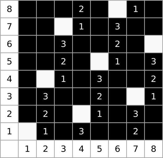 | Keywords: Атласное переплетение 8.3.png ru Атласное пе еплетение 8/3 own Quicktotal 2013-01-06 wikitable style background black center background white 8 color white 2 background f9f9f9 color white 1 center background white 7 background f9f9f9 color white 1 color white 3 center background white 6 color white 3 color white 2 background f9f9f9 center background white 5 color white 2 background f9f9f9 color white 1 color white 3 center background white 4 background f9f9f9 color white 1 color white 3 color white 2 center background white 3 color white 3 color white 2 background f9f9f9 color white 1 center background white 2 color white 2 background f9f9f9 color white 1 color white 3 center background white 1 background f9f9f9 color white 1 color white 3 color white 2 center style background white 1 2 3 4 5 6 7 8 <source lang html5 > wikitable style background black center background white 8 color white 2 background f9f9f9 color white 1 center background white 7 background f9f9f9 color white 1 color white 3 center background white 6 color white 3 color white 2 background f9f9f9 center background white 5 color white 2 background f9f9f9 color white 1 color white 3 center background white 4 background f9f9f9 color white 1 color white 3 color white 2 center background white 3 color white 3 color white 2 background f9f9f9 color white 1 center background white 2 color white 2 background f9f9f9 color white 1 color white 3 center background white 1 background f9f9f9 color white 1 color white 3 color white 2 center style background white 1 2 3 4 5 6 7 8 </source> Weaving patterns Cc-zero |