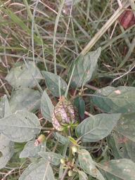 | Keywords: கூவந்தி8.jpg en Botanical name - Physalis minima Common names - Native gooseberry; Wild cape gooseberry ;Ground Cherry; Sunberry Tamil names Kuvanti ; Kupanti Ayurvedic name - Chirpoti Ripe berry is sweet Plant is known for its analgesic action;Studies say tha the plant extract has shown anti-inflammatory; Effective for urinary problems ;Fruit has anti cancer property Picture - Watch the lines in typical 'bag'of 'Native gooseberry' ta கூவந்தி கூண்டாகத் தொங்கும் பை இச் செடியின் அடையாளமாகும்; இதற்குள்ளிருந்து வருவது மஞ்சள் பூ; பின்னனர் வரும் காய் இனிக்கும்; பழம் புற்றுநோய் போக்கவல்ல மருந்து; சிறுந ர் நோய்களுக்கு இம் மூலிகை மருந்தாகிறது; உடல் வலிக்கு மருந்தாகும் இத் தாவரம் ; களைச் செடியாகக் கருதப்படுவது கூண்டு என்பதைக் குறிக்கும் வேர்ச் சொல் கூ ; கூண்டுக்குள் விதை இருப்பதால் வதிவதால் கூவந்தி என்று பெயர் வந்திருக்கலாம் படத்தில் - கூவந்திச் செடிப் பை யிலுள்ள வரிகளைப் பாருங்கள் hi रसभर Rasbhari own Dr S Soundarapandian 2014-04-07 Own research Shot in Chennai Tamilnadu India 4 5 kms off sea-shore ; Latitude-13°02'20 N ; Longitude- 80°13'43 E ; Elevation from sea level - 6 7 m Physalis minima Cc-zero |