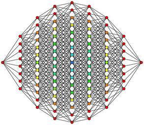 | Keywords: 8-cube column graph.svg 8-hypercube octeract graph This hypercube graph is an orthogonal projection This oriented projection shows columns of vertices positioned a vertex-edge-vertex distance from one vertex on the left to one vertex on the right and edges attaching adjacent columns of vertices The number of vertices in each column represents rows in Pascal's triangle being 1 8 28 56 70 56 28 8 1 in the case of a 8-cube Note Starting with the tesseract the orthogonal projection shows vertices overlapping The counts of vertices at each 2d location are represented by colors red orange yellow green etc own Geoff Richards Qef 2008-07-23 Old bitmap version en Image 8-cube column graph gif Source code See en User Qef/Orthographic hypercube diagrams Qef Hypercube graphs 8 2-fold rotational symmetry Geometry images with dihedral symmetry 02 |
