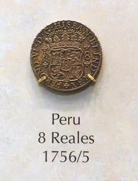 Keywords: 8 Reales, Peru, 1755-1756 - National Museum of American History - DSC00178.jpg en Exhibit in the National Museum of American History Washington DC USA Photography was permitted in the museum without restriction 2015-03-27 11 26 57 own Daderot other versions cc-zero Coins in the National Museum of American History Coins of Peru