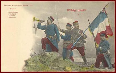 Keywords: 8e RI -1875.jpg en The 8th Regiment of Infantry at about 1875 fr le 8e régiment d'infanterie de ligne en 1875 carte postale Creator 1875 PD-old Military history of France