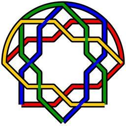 | Keywords: 8symmetric-quasi-arabesque.svg 8-fold symmetric quasi-Arabesque pattern of four interlinked loops Individually each loop is in a Solomon's knot configuration with each of the other three loops Converted from the following vector PostScript source code <pre> 300 396 translate 1 75 dup scale /x 5000 sqrt def/y 3200 sqrt def /z 2 sqrt 1 sub def 1 setlinejoin /A -100 0 moveto -60 40 lineto -40 z mul 40 lineto x y sub x lineto 0 0 100 45 0 arcn 60 -40 lineto 40 z mul -40 lineto x y sub neg x neg lineto 0 0 100 225 180 arcn closepath gsave 10 setlinewidth 0 setgray stroke grestore stroke def 5 setlinewidth 1 0 0 setrgbcolor A gsave 0 0 1 setrgbcolor 45 rotate A 0 6 0 setrgbcolor 45 rotate A 1 8 0 setrgbcolor 45 rotate A grestore /B 0 setgray 10 setlinewidth 0 0 100 187 180 arcn 8 8 rlineto stroke -46 5 40 moveto 13 0 rlineto stroke 19 x moveto 21 0 rlineto stroke 52 -40 z mul 12 add moveto 9 2 9 2 rlineto stroke 21 5 -78 5 moveto 15 5 15 5 rlineto stroke 40 46 5 moveto 0 -13 rlineto stroke 1 0 0 setrgbcolor 5 setlinewidth 0 0 100 189 180 arcn 10 10 rlineto stroke -48 5 40 moveto 17 0 rlineto stroke 17 x moveto 25 0 rlineto stroke 0 0 1 setrgbcolor 50 -40 z mul 10 add moveto 13 2 13 2 rlineto stroke 19 5 -80 5 moveto 19 19 rlineto stroke 0 6 0 setrgbcolor 40 48 5 moveto 0 -17 rlineto stroke def B gsave 180 rotate B grestore showpage EOF</pre> 2013 AnonMoos 8-fold rotational symmetry 4 component links Images with PostScript source code 24 crossing number knots and links Solomon's knot Outline knots and links Round graphic ornaments |