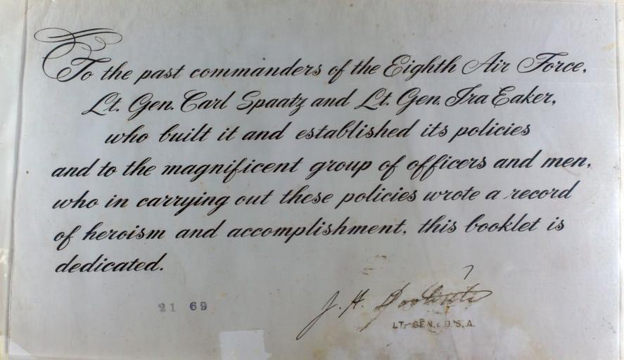 | Keywords: 8th air force 8thairforce bombing world war two worldwartwo text writing document From the photo album "Strategic and Tactical Operations of the Eighth Air Force" which details the 8th Air Forces bombing campaign in Europe. Repository: San Diego Air and Space Museum Archive From the photo album "Strategic and Tactical Operations of the Eighth Air Force" which details the 8th Air Forces bombing campaign in Europe. Repository: San Diego Air and Space Museum Archive |