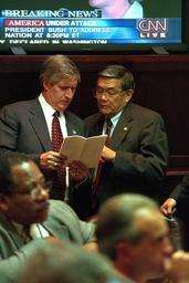 | Keywords: washington d.c. dc u.s. national archives usnationalarchives nara:arcid=5997254 9/11 911 president george w. bush presidentgeorgewbush 2001 george w. bush presidential library georgewbushpresidentiallibrary andy card andycard norman mineta normanmineta roosevelt room rooseveltroom white house whitehouse people indoor Original Caption: White House Chief of Staff Andy Card and Secretary of Transportation Norman Mineta confer in the Roosevelt Room of the White House Tuesday, Sept. 11, 2001, prior to President George W. Bush's Address to the Nation from the Oval Office. U.S. National Archives’ Local Identifier: P7141-18 Created By: President (2001-2009 : Bush). Office of Management and Administration. Office of White House Management. Photography Office. (01/20/2001 - 01/20/2009) From:: Photographs Related to the George W. Bush Administration, compiled 01/20/2001 - 01/20/2009 Production Date: 09/11/2001 Persistent URL: arcweb.archives.gov/arc/action/ExternalIdSearch?id=5997254 Repository: George W. Bush Library (Lewisville, TX) Access Restrictions: Unrestricted Use Restrictions: Unrestricted Original Caption: White House Chief of Staff Andy Card and Secretary of Transportation Norman Mineta confer in the Roosevelt Room of the White House Tuesday, Sept. 11, 2001, prior to President George W. Bush's Address to the Nation from the Oval Office. U.S. National Archives’ Local Identifier: P7141-18 Created By: President (2001-2009 : Bush). Office of Management and Administration. Office of White House Management. Photography Office. (01/20/2001 - 01/20/2009) From:: Photographs Related to the George W. Bush Administration, compiled 01/20/2001 - 01/20/2009 Production Date: 09/11/2001 Persistent URL: arcweb.archives.gov/arc/action/ExternalIdSearch?id=5997254 Repository: George W. Bush Library (Lewisville, TX) Access Restrictions: Unrestricted Use Restrictions: Unrestricted |