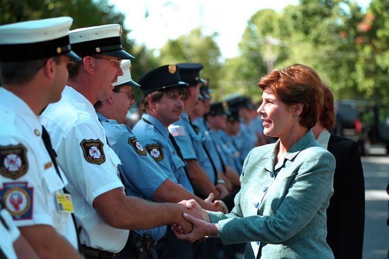 | Keywords: central city centralcity pa u.s. national archives usnationalarchives 9/11 911 president george w. bush presidentgeorgewbush nara:arcid=5997320 george w. bush presidential library georgewbushpresidentiallibrary laura bush laurabush 2001 pennsylvania outdoor Original Caption: Mrs. Laura W. Bush greets firefighters and police at a memorial service for victims of United Flight 93 at the Indian Lake Resort in Central City, Pennsylvania. U.S. National Archives’ Local Identifier: P7475-05A Created By: President (2001-2009 : Bush). Office of Management and Administration. Office of White House Management. Photography Office. (01/20/2001 - 01/20/2009) From: Photographs Related to the George W. Bush Administration, compiled 01/20/2001 - 01/20/2009 Production Dates: 09/17/2001 Persistent URL: arcweb.archives.gov/arc/action/ExternalIdSearch?id=5997320 Repository: George W. Bush Library (Lewisville, TX) Access Restrictions: Unrestricted Use Restrictions: Unrestricted Original Caption: Mrs. Laura W. Bush greets firefighters and police at a memorial service for victims of United Flight 93 at the Indian Lake Resort in Central City, Pennsylvania. U.S. National Archives’ Local Identifier: P7475-05A Created By: President (2001-2009 : Bush). Office of Management and Administration. Office of White House Management. Photography Office. (01/20/2001 - 01/20/2009) From: Photographs Related to the George W. Bush Administration, compiled 01/20/2001 - 01/20/2009 Production Dates: 09/17/2001 Persistent URL: arcweb.archives.gov/arc/action/ExternalIdSearch?id=5997320 Repository: George W. Bush Library (Lewisville, TX) Access Restrictions: Unrestricted Use Restrictions: Unrestricted |