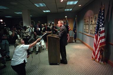 | Keywords: shreveport la u.s. national archives usnationalarchives nara:arcid=5997230 9/11 911 president george w. bush presidentgeorgewbush 2001 george w. bush presidential library georgewbushpresidentiallibrary terrorist attacks terroristattacks barksdale air force base airforcebase indoor Original Caption: President George W. Bush delivers remarks on the terrorist attacks Tuesday, Sept. 11, 2001, from Barksdale Air Force Base in Louisiana, before departing for Offutt Air Force Base in Nebraska. U.S. National Archives’ Local Identifier: P7078-04 Created By: President (2001-2009 : Bush). Office of Management and Administration. Office of White House Management. Photography Office. (01/20/2001 - 01/20/2009) From:: Photographs Related to the George W. Bush Administration, compiled 01/20/2001 - 01/20/2009 Production Date: 09/11/2001 Persistent URL: arcweb.archives.gov/arc/action/ExternalIdSearch?id=5997230 Repository: George W. Bush Library (Lewisville, TX) Access Restrictions: Unrestricted Use Restrictions: Unrestricted Original Caption: President George W. Bush delivers remarks on the terrorist attacks Tuesday, Sept. 11, 2001, from Barksdale Air Force Base in Louisiana, before departing for Offutt Air Force Base in Nebraska. U.S. National Archives’ Local Identifier: P7078-04 Created By: President (2001-2009 : Bush). Office of Management and Administration. Office of White House Management. Photography Office. (01/20/2001 - 01/20/2009) From:: Photographs Related to the George W. Bush Administration, compiled 01/20/2001 - 01/20/2009 Production Date: 09/11/2001 Persistent URL: arcweb.archives.gov/arc/action/ExternalIdSearch?id=5997230 Repository: George W. Bush Library (Lewisville, TX) Access Restrictions: Unrestricted Use Restrictions: Unrestricted |