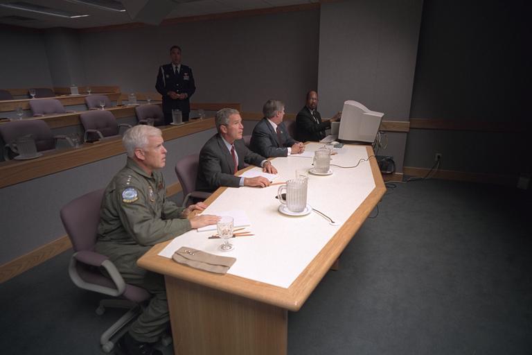 | Keywords: ne u.s. national archives usnationalarchives nara:arcid=5997236 9/11 911 president george w. bush presidentgeorgewbush 2001 admiral richard mies admiralrichardmies andy card andycard george w. bush presidential library georgewbushpresidentiallibrary offut air force base offutairforcebase nebraska video teleconference indoor Original Caption: President George W. Bush, Admiral Richard Mies, left, and White House Chief of Staff Andy Card conduct a video teleconference Tuesday Sept. 11, 2001, at Offutt Air Force Base in Nebraska. U.S. National Archives’ Local Identifier: P7093-12 Created By: President (2001-2009 : Bush). Office of Management and Administration. Office of White House Management. Photography Office. (01/20/2001 - 01/20/2009) From:: Photographs Related to the George W. Bush Administration, compiled 01/20/2001 - 01/20/2009 Production Date: 09/11/2001 Persistent URL: arcweb.archives.gov/arc/action/ExternalIdSearch?id=5997236 Repository: George W. Bush Library (Lewisville, TX) Access Restrictions: Unrestricted Use Restrictions: Unrestricted Original Caption: President George W. Bush, Admiral Richard Mies, left, and White House Chief of Staff Andy Card conduct a video teleconference Tuesday Sept. 11, 2001, at Offutt Air Force Base in Nebraska. U.S. National Archives’ Local Identifier: P7093-12 Created By: President (2001-2009 : Bush). Office of Management and Administration. Office of White House Management. Photography Office. (01/20/2001 - 01/20/2009) From:: Photographs Related to the George W. Bush Administration, compiled 01/20/2001 - 01/20/2009 Production Date: 09/11/2001 Persistent URL: arcweb.archives.gov/arc/action/ExternalIdSearch?id=5997236 Repository: George W. Bush Library (Lewisville, TX) Access Restrictions: Unrestricted Use Restrictions: Unrestricted |