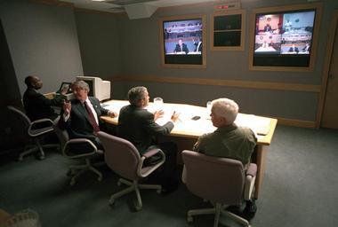 | Keywords: nebraska u.s. national archives usnationalarchives nara:arcid=5997237 9/11 911 president george w. bush presidentgeorgewbush 2001 george w. bush presidential library georgewbushpresidentiallibrary offut air force base offutairforcebase andy card andycard admiral richard mies richardmies video teleconference indoor Original Caption: President George W. Bush, White House Chief of Staff Andy Card, left, and Adm. Richard Mies conduct a video teleconference at Offutt Air Force Base in Nebraska. U.S. National Archives’ Local Identifier: P7093-16 Created By: President (2001-2009 : Bush). Office of Management and Administration. Office of White House Management. Photography Office. (01/20/2001 - 01/20/2009) From: Photographs Related to the George W. Bush Administration, compiled 01/20/2001 - 01/20/2009 Production Dates: 09/11/2001 Persistent URL: arcweb.archives.gov/arc/action/ExternalIdSearch?id=5997237 Repository: George W. Bush Library (Lewisville, TX) Access Restrictions: Unrestricted Use Restrictions: Unrestricted Original Caption: President George W. Bush, White House Chief of Staff Andy Card, left, and Adm. Richard Mies conduct a video teleconference at Offutt Air Force Base in Nebraska. U.S. National Archives’ Local Identifier: P7093-16 Created By: President (2001-2009 : Bush). Office of Management and Administration. Office of White House Management. Photography Office. (01/20/2001 - 01/20/2009) From: Photographs Related to the George W. Bush Administration, compiled 01/20/2001 - 01/20/2009 Production Dates: 09/11/2001 Persistent URL: arcweb.archives.gov/arc/action/ExternalIdSearch?id=5997237 Repository: George W. Bush Library (Lewisville, TX) Access Restrictions: Unrestricted Use Restrictions: Unrestricted |