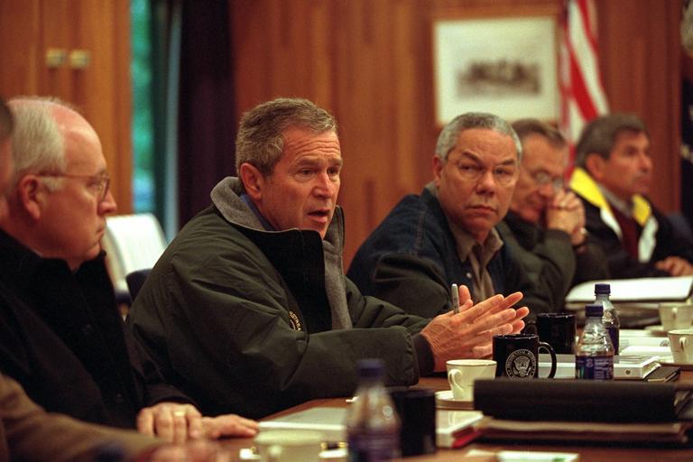 Keywords: thurmont md u.s. national archives usnationalarchives 9/11 911 president george w. bush presidentgeorgewbush nara:arcid=5997312 national security council camp david campdavid 2001 vice president vicepresident president secretary of state secretaryofstate secretary of defense secretaryofdefense donald rumsfield donaldrumsfield dick cheney dickcheney colin powell colinpowell paul wolfowitz paulwolfowitz george w. bush georgewbush george w. bush presidential library georgewbushpresidentiallibrary groupshot people indoor Original Caption: President George W. Bush confers with his National Security Council at Camp David in Thurmont, Maryland. Pictured from left are: Vice President Dick Cheney; Colin Powell, Secretary of State; Donald Rumsfeld, Secretary of Defense; and Paul Wolfowitz, Deputy Secretary of Defense. U.S. National Archives’ Local Identifier: P7389-27A Created By: President (2001-2009 : Bush). Office of Management and Administration. Office of White House Management. Photography Office. (01/20/2001 - 01/20/2009) From: Photographs Related to the George W. Bush Administration, compiled 01/20/2001 - 01/20/2009 Production Dates: 09/15/2001 Persistent URL: arcweb.archives.gov/arc/action/ExternalIdSearch?id=5997312 Repository: George W. Bush Library (Lewisville, TX) Access Restrictions: Unrestricted Use Restrictions: Unrestricted Original Caption: President George W. Bush confers with his National Security Council at Camp David in Thurmont, Maryland. Pictured from left are: Vice President Dick Cheney; Colin Powell, Secretary of State; Donald Rumsfeld, Secretary of Defense; and Paul Wolfowitz, Deputy Secretary of Defense. U.S. National Archives’ Local Identifier: P7389-27A Created By: President (2001-2009 : Bush). Office of Management and Administration. Office of White House Management. Photography Office. (01/20/2001 - 01/20/2009) From: Photographs Related to the George W. Bush Administration, compiled 01/20/2001 - 01/20/2009 Production Dates: 09/15/2001 Persistent URL: arcweb.archives.gov/arc/action/ExternalIdSearch?id=5997312 Repository: George W. Bush Library (Lewisville, TX) Access Restrictions: Unrestricted Use Restrictions: Unrestricted |