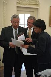 | Keywords: washington d.c. dc u.s. national archives usnationalarchives 9/11 911 president george w. bush presidentgeorgewbush nara:arcid=5997330 george w. bush presidential library georgewbushpresidentiallibrary george w. bush georgewbush national security adviser nationalsecurityadviser condoleezza rice condoleezzarice secretary of state secretaryofstate colin powell colinpowell oval office ovaloffice white house whitehouse russian foreign minister russianforeignminister indoor suit Original Caption: Shortly before meeting Russian Foreign Minister Igor Ivanov, President George W. Bush looks over a brief with Secretary of State Colin Powell and National Security Adviser Condoleezza Rice in the Oval Office. U.S. National Archives’ Local Identifier: P7570-12 Created By: President (2001-2009 : Bush). Office of Management and Administration. Office of White House Management. Photography Office. (01/20/2001 - 01/20/2009) From: Photographs Related to the George W. Bush Administration, compiled 01/20/2001 - 01/20/2009 Production Dates: 09/19/2001 Persistent URL: arcweb.archives.gov/arc/action/ExternalIdSearch?id=5997330 Repository: George W. Bush Library (Lewisville, TX) Access Restrictions: Unrestricted Use Restrictions: Unrestricted Original Caption: Shortly before meeting Russian Foreign Minister Igor Ivanov, President George W. Bush looks over a brief with Secretary of State Colin Powell and National Security Adviser Condoleezza Rice in the Oval Office. U.S. National Archives’ Local Identifier: P7570-12 Created By: President (2001-2009 : Bush). Office of Management and Administration. Office of White House Management. Photography Office. (01/20/2001 - 01/20/2009) From: Photographs Related to the George W. Bush Administration, compiled 01/20/2001 - 01/20/2009 Production Dates: 09/19/2001 Persistent URL: arcweb.archives.gov/arc/action/ExternalIdSearch?id=5997330 Repository: George W. Bush Library (Lewisville, TX) Access Restrictions: Unrestricted Use Restrictions: Unrestricted |