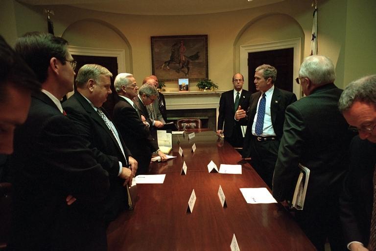 | Keywords: washington d.c. dc u.s. national archives usnationalarchives 9/11 911 president george w. bush presidentgeorgewbush nara:arcid=5997382 2001 george w. bush presidential library georgewbushpresidentiallibrary domestic policy team domesticpolicyteam roosevelt room rooseveltroom white house whitehouse indoor Original Caption: President George W. Bush meets with his domestic policy team in the Roosevelt Room of the White House. U.S. National Archives’ Local Identifier: P9040-34 Created By: President (2001-2009 : Bush). Office of Management and Administration. Office of White House Management. Photography Office. (01/20/2001 - 01/20/2009) From: Photographs Related to the George W. Bush Administration, compiled 01/20/2001 - 01/20/2009 Production Dates: 10/29/2001 Persistent URL: arcweb.archives.gov/arc/action/ExternalIdSearch?id=5997382 Repository: George W. Bush Library (Lewisville, TX) Access Restrictions: Unrestricted Use Restrictions: Unrestricted Original Caption: President George W. Bush meets with his domestic policy team in the Roosevelt Room of the White House. U.S. National Archives’ Local Identifier: P9040-34 Created By: President (2001-2009 : Bush). Office of Management and Administration. Office of White House Management. Photography Office. (01/20/2001 - 01/20/2009) From: Photographs Related to the George W. Bush Administration, compiled 01/20/2001 - 01/20/2009 Production Dates: 10/29/2001 Persistent URL: arcweb.archives.gov/arc/action/ExternalIdSearch?id=5997382 Repository: George W. Bush Library (Lewisville, TX) Access Restrictions: Unrestricted Use Restrictions: Unrestricted |