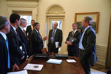 | Keywords: washington d.c. dc u.s. national archives usnationalarchives 9/11 911 president george w. bush presidentgeorgewbush nara:arcid=5997386 oval office ovaloffice 2001 senior officials seniorofficials george w. bush presidential library georgewbushpresidentiallibrary indoor Original Caption: President George W. Bush meets with Nick Calio, Joel Kaplan, Josh Bolten, Dan Bartlett Sec. Norman Minetra, Ari Fleischer and Andy Card in the Oval Office of the White House. U.S. National Archives’ Local Identifier: P9109-05 Created By: President (2001-2009 : Bush). Office of Management and Administration. Office of White House Management. Photography Office. (01/20/2001 - 01/20/2009) From: Photographs Related to the George W. Bush Administration, compiled 01/20/2001 - 01/20/2009 Production Dates: 10/30/2001 Persistent URL: arcweb.archives.gov/arc/action/ExternalIdSearch?id=5997386 Repository: George W. Bush Library (Lewisville, TX) Access Restrictions: Unrestricted Use Restrictions: Unrestricted Original Caption: President George W. Bush meets with Nick Calio, Joel Kaplan, Josh Bolten, Dan Bartlett Sec. Norman Minetra, Ari Fleischer and Andy Card in the Oval Office of the White House. U.S. National Archives’ Local Identifier: P9109-05 Created By: President (2001-2009 : Bush). Office of Management and Administration. Office of White House Management. Photography Office. (01/20/2001 - 01/20/2009) From: Photographs Related to the George W. Bush Administration, compiled 01/20/2001 - 01/20/2009 Production Dates: 10/30/2001 Persistent URL: arcweb.archives.gov/arc/action/ExternalIdSearch?id=5997386 Repository: George W. Bush Library (Lewisville, TX) Access Restrictions: Unrestricted Use Restrictions: Unrestricted |