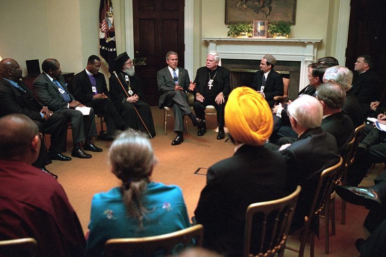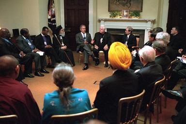 | Keywords: washington d.c. dc u.s. national archives usnationalarchives 9/11 911 president george w. bush presidentgeorgewbush nara:arcid=5997334 religious leaders religiousleaders george w. bush georgewbush 2001 roosevelt room rooseveltroom white house whitehouse george w. bush presidential library georgewbushpresidentiallibrary indoor Original Caption: President George W. Bush meets with religious leaders in the Roosevelt Room of the White House. U.S. National Archives’ Local Identifier: P7601-14 Created By: President (2001-2009 : Bush). Office of Management and Administration. Office of White House Management. Photography Office. (01/20/2001 - 01/20/2009) From: Photographs Related to the George W. Bush Administration, compiled 01/20/2001 - 01/20/2009 Production Dates: 09/20/2001 Persistent URL: arcweb.archives.gov/arc/action/ExternalIdSearch?id=5997334 Repository: George W. Bush Library (Lewisville, TX) Access Restrictions: Unrestricted Use Restrictions: Unrestricted Original Caption: President George W. Bush meets with religious leaders in the Roosevelt Room of the White House. U.S. National Archives’ Local Identifier: P7601-14 Created By: President (2001-2009 : Bush). Office of Management and Administration. Office of White House Management. Photography Office. (01/20/2001 - 01/20/2009) From: Photographs Related to the George W. Bush Administration, compiled 01/20/2001 - 01/20/2009 Production Dates: 09/20/2001 Persistent URL: arcweb.archives.gov/arc/action/ExternalIdSearch?id=5997334 Repository: George W. Bush Library (Lewisville, TX) Access Restrictions: Unrestricted Use Restrictions: Unrestricted |