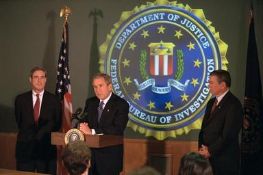 | Keywords: washington d.c. dc u.s. national archives usnationalarchives 9/11 911 president george w. bush presidentgeorgewbush nara:arcid=5997351 federal bureau of investigation federalbureauofinvestigation groupshot people indoor Original Caption: President George W. Bush addresses the media during a tour of Federal Bureau of Investigation (FBI) Headquarters with Director Robert Mueller, left, and U.S. Attorney General John Ashcroft. U.S. National Archives’ Local Identifier: P7784-32 Created By: President (2001-2009 : Bush). Office of Management and Administration. Office of White House Management. Photography Office. (01/20/2001 - 01/20/2009) From: Photographs Related to the George W. Bush Administration, compiled 01/20/2001 - 01/20/2009 Production Dates: 09/25/2001 Persistent URL: arcweb.archives.gov/arc/action/ExternalIdSearch?id=5997351 Repository: George W. Bush Library (Lewisville, TX) Access Restrictions: Unrestricted Use Restrictions: Unrestricted Original Caption: President George W. Bush addresses the media during a tour of Federal Bureau of Investigation (FBI) Headquarters with Director Robert Mueller, left, and U.S. Attorney General John Ashcroft. U.S. National Archives’ Local Identifier: P7784-32 Created By: President (2001-2009 : Bush). Office of Management and Administration. Office of White House Management. Photography Office. (01/20/2001 - 01/20/2009) From: Photographs Related to the George W. Bush Administration, compiled 01/20/2001 - 01/20/2009 Production Dates: 09/25/2001 Persistent URL: arcweb.archives.gov/arc/action/ExternalIdSearch?id=5997351 Repository: George W. Bush Library (Lewisville, TX) Access Restrictions: Unrestricted Use Restrictions: Unrestricted |